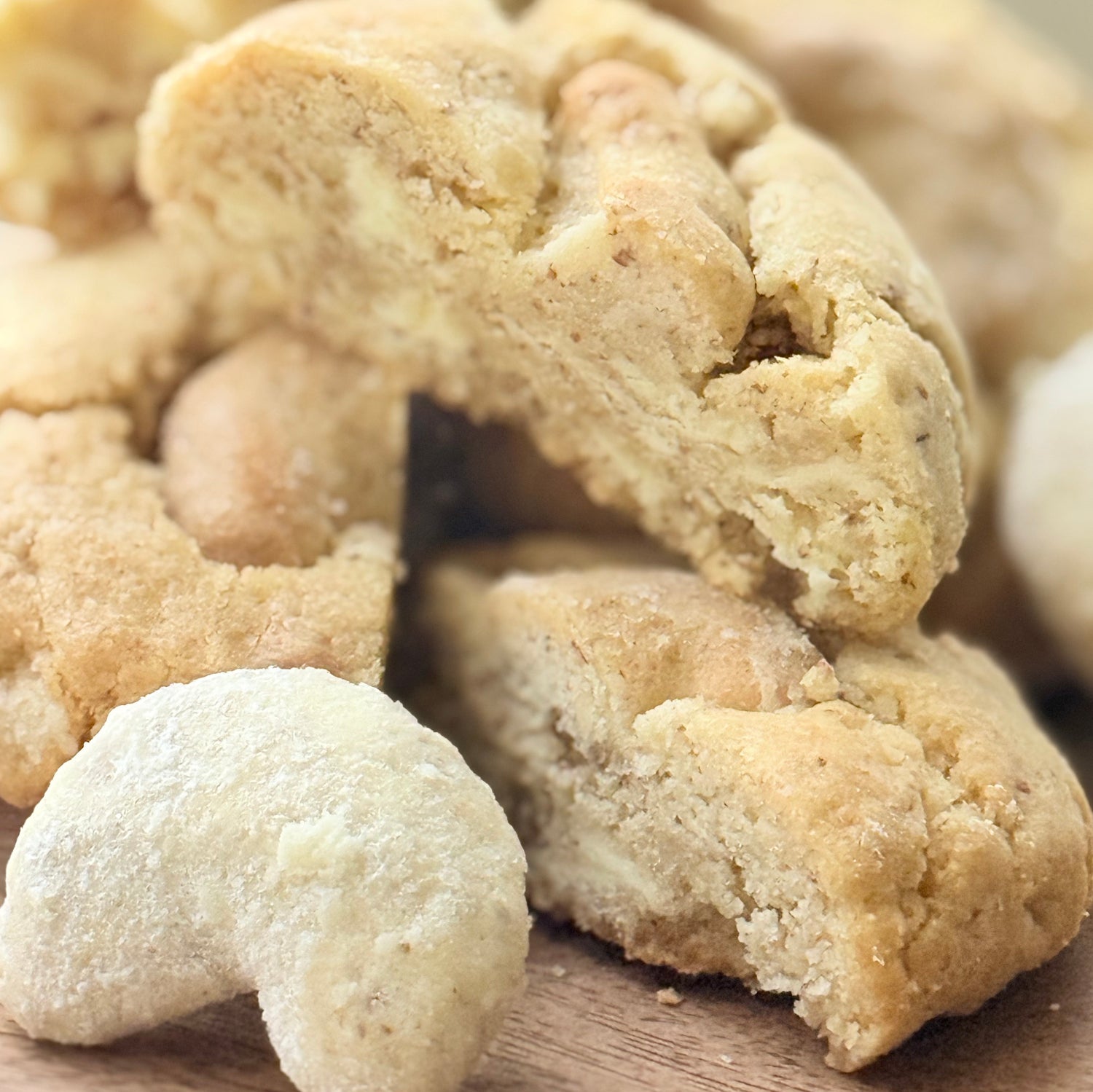 - Vanillekipferl: DER Weihnachtskeks-Klassiker schlechthin & wir haben ihn in ein Cookie gepackt. Handgemachte Vanillekipferl mit echter Bourbon-Vanille sind ebenso in dem Cookie wie weiße Schokochips. Muss man gegessen haben ;).